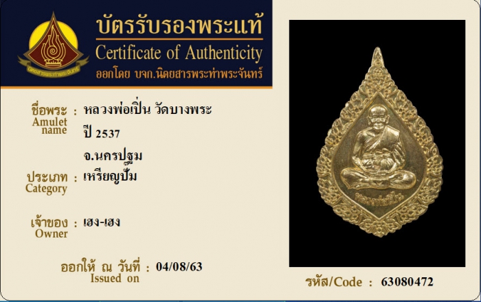ค้นหาใบการันตีพระแท้