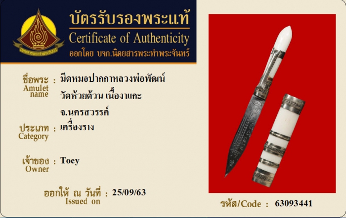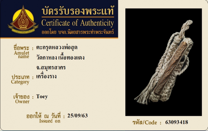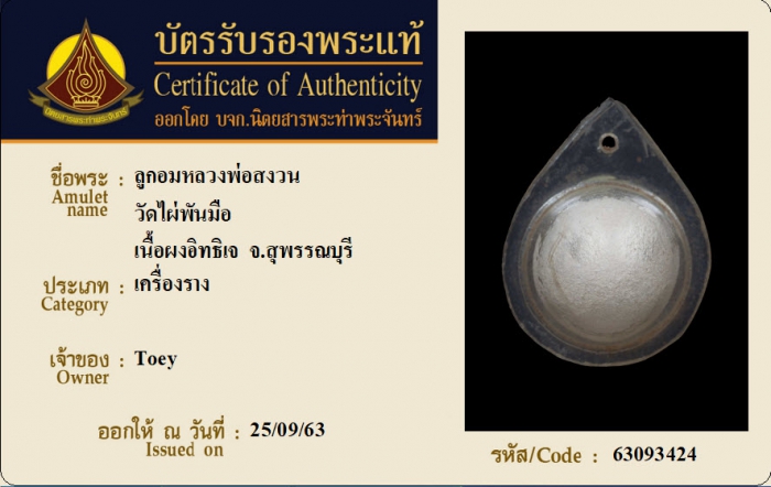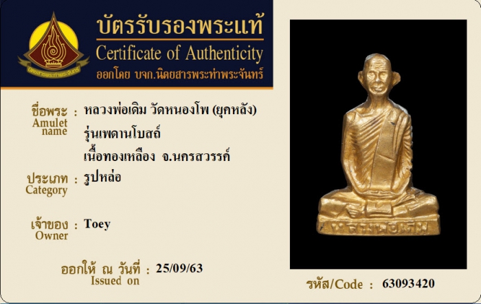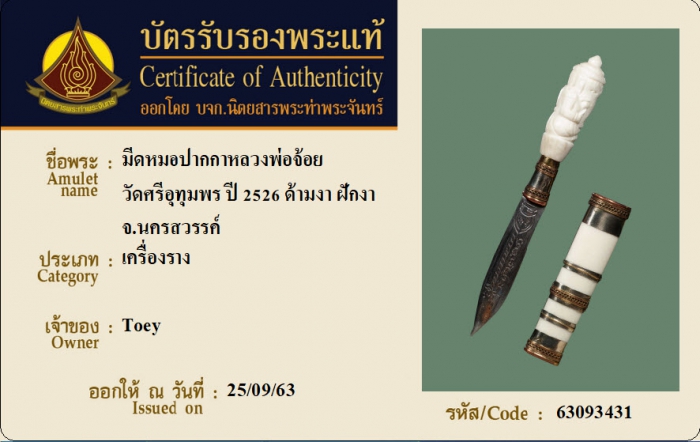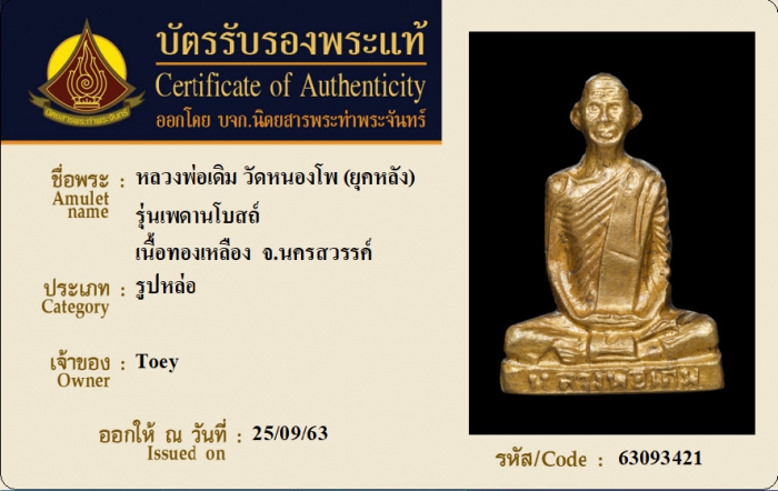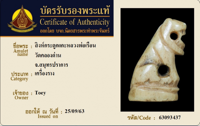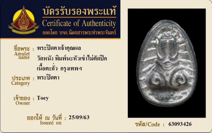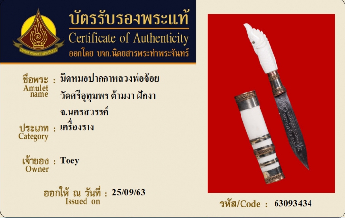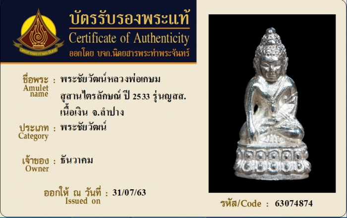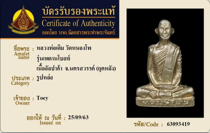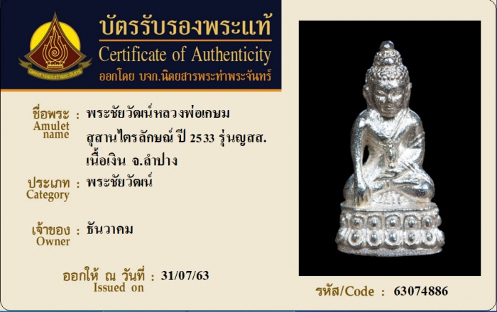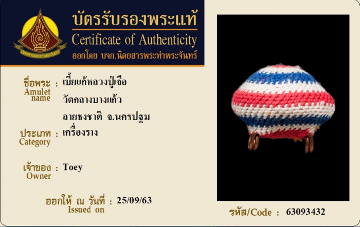ค้นหาใบการันตีพระแท้
