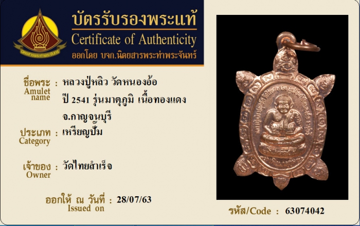 ค้นหาใบการันตีพระแท้