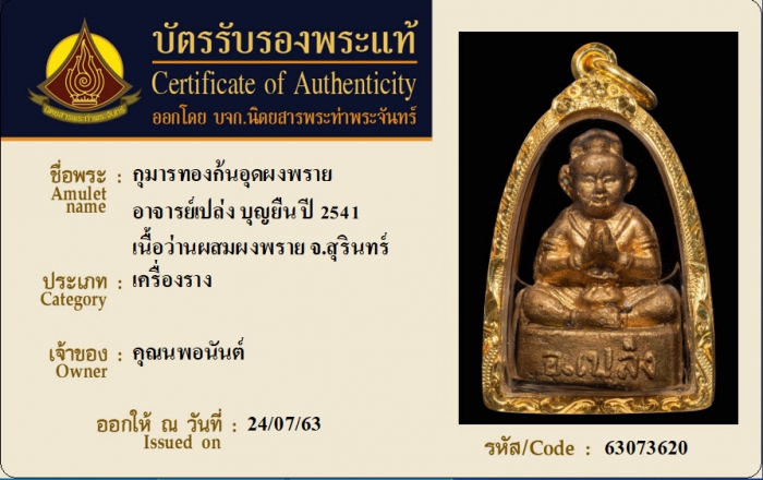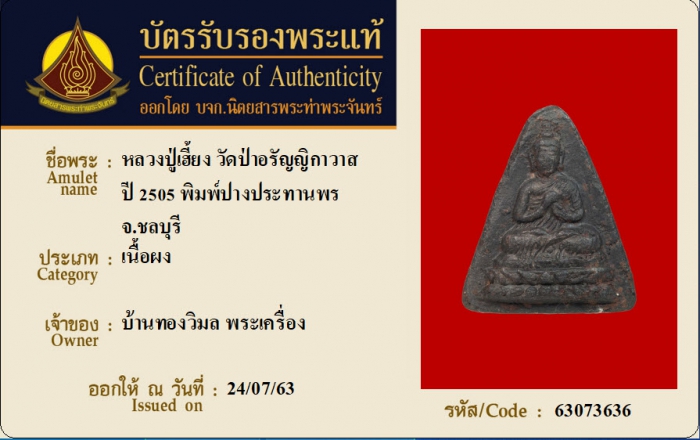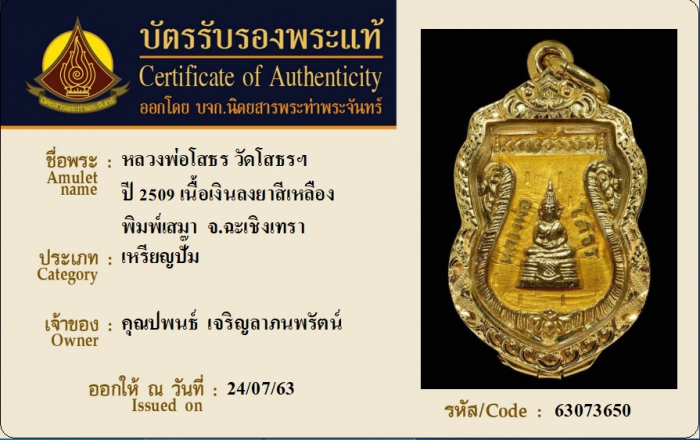 ค้นหาใบการันตีพระแท้
