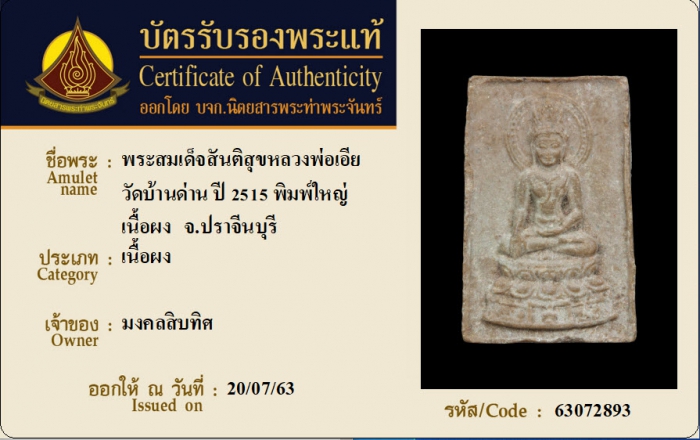 ค้นหาใบการันตีพระแท้