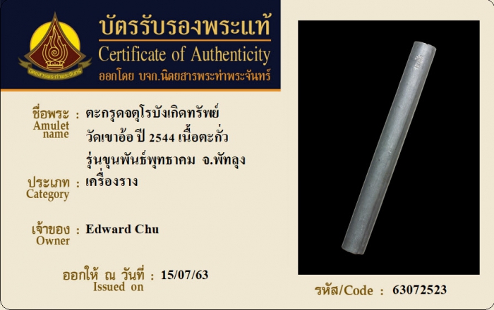 ค้นหาใบการันตีพระแท้