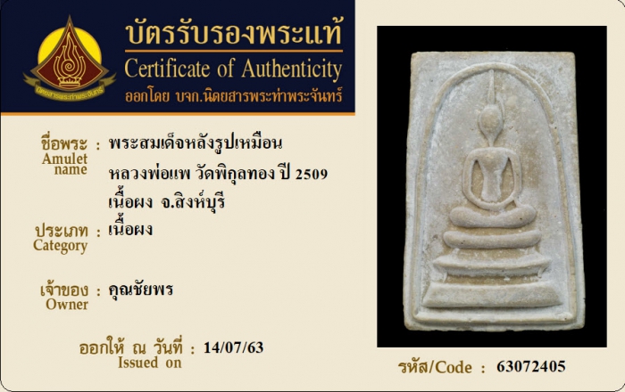 ค้นหาใบการันตีพระแท้