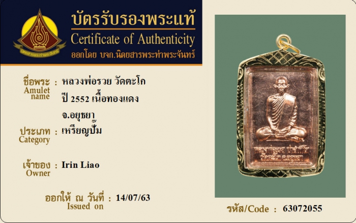 ค้นหาใบการันตีพระแท้