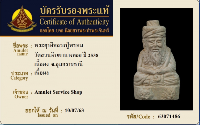 ค้นหาใบการันตีพระแท้