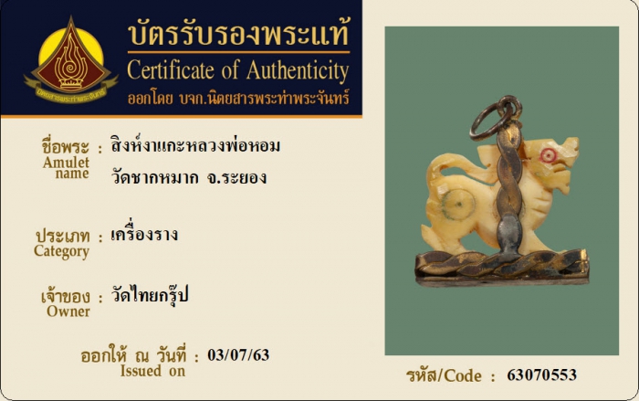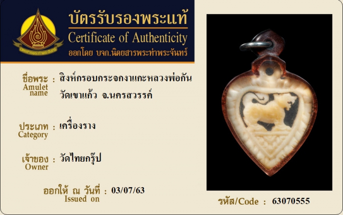 ค้นหาใบการันตีพระแท้