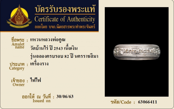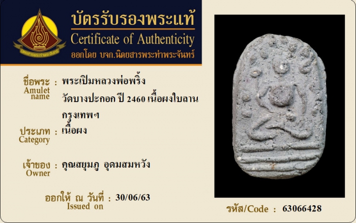 ค้นหาใบการันตีพระแท้