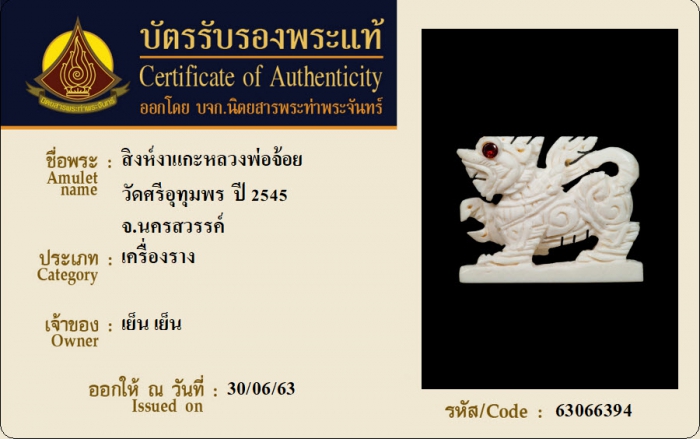 ค้นหาใบการันตีพระแท้