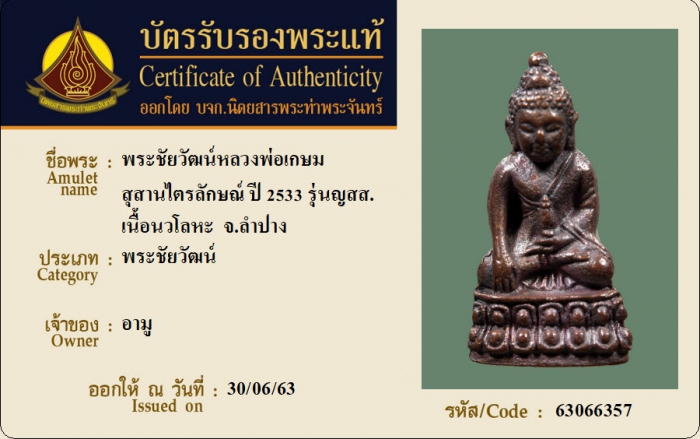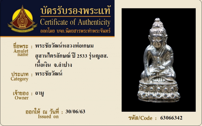 ค้นหาใบการันตีพระแท้