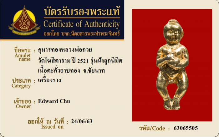 ค้นหาใบการันตีพระแท้