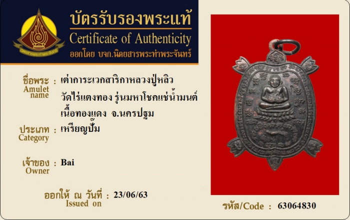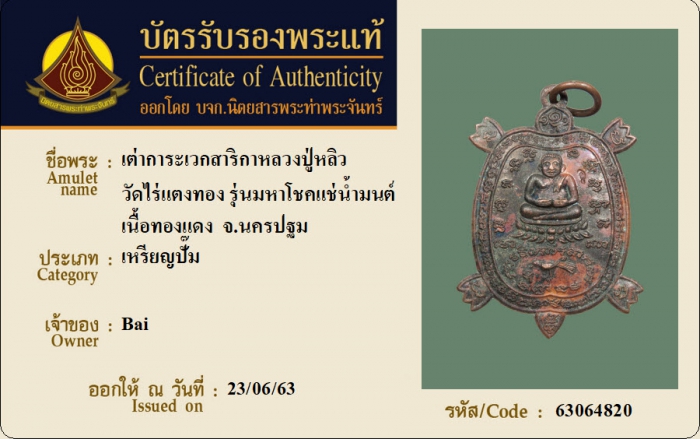 ค้นหาใบการันตีพระแท้