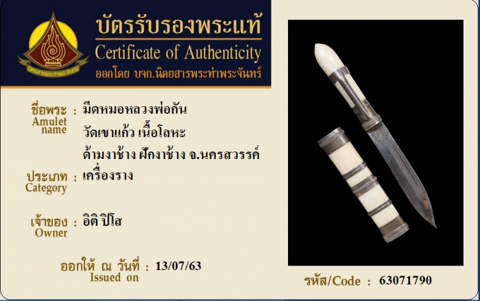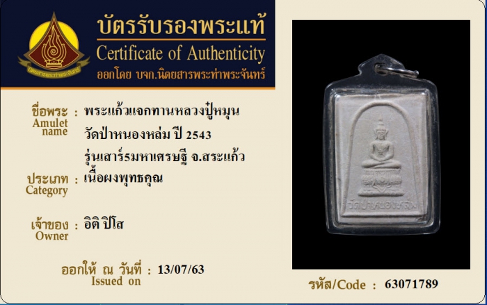 ค้นหาใบการันตีพระแท้
