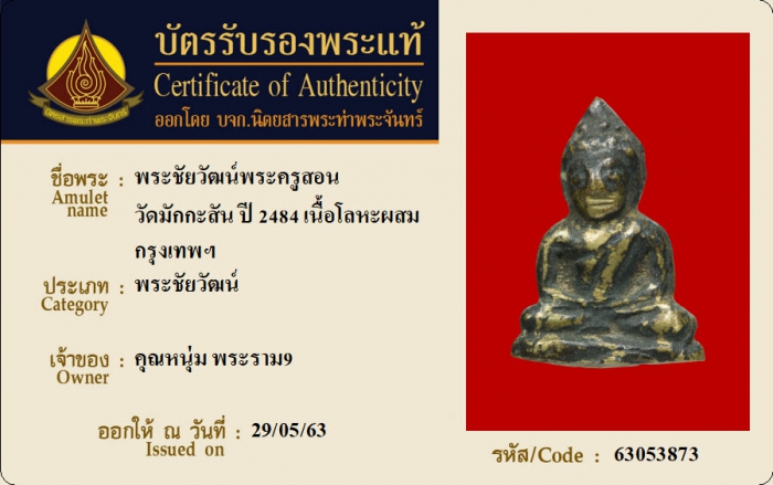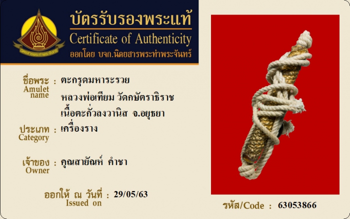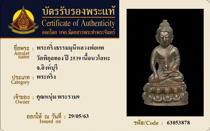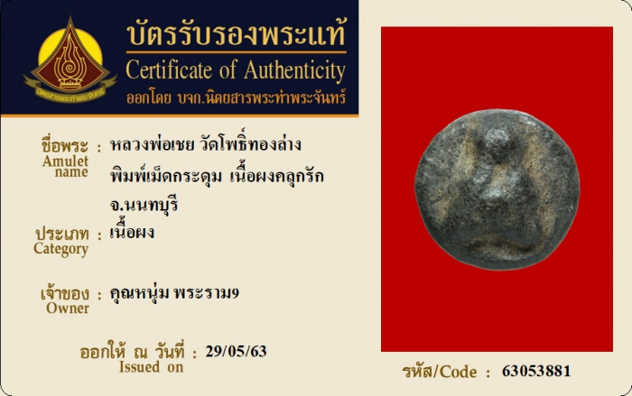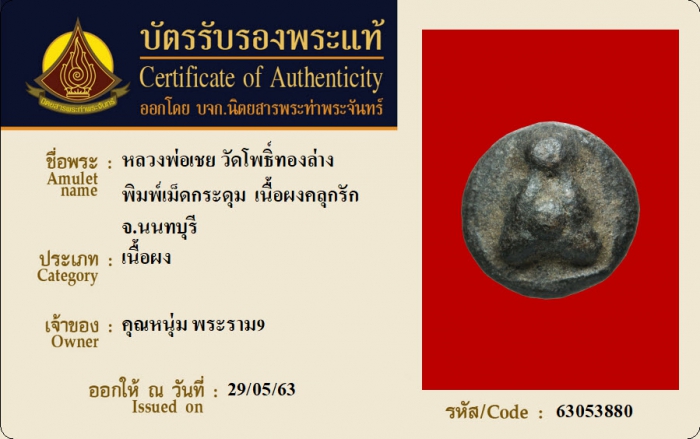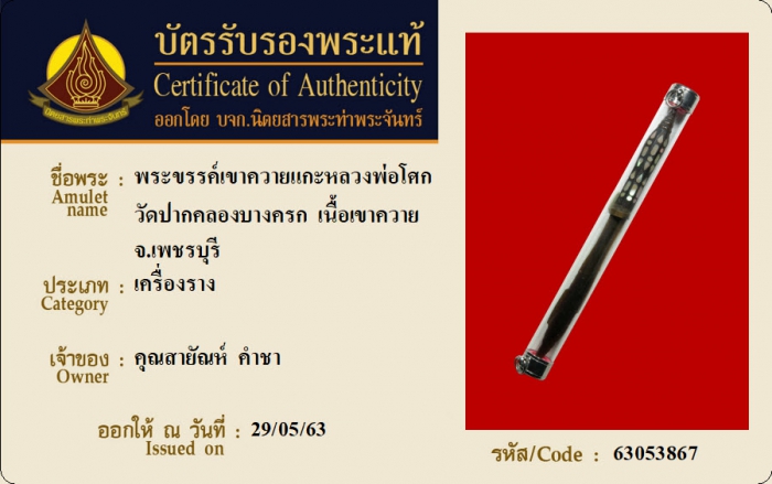 ค้นหาใบการันตีพระแท้