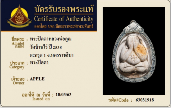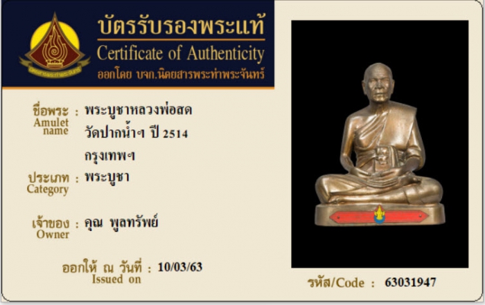 ค้นหาใบการันตีพระแท้