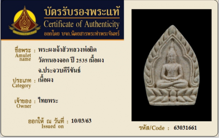ค้นหาใบการันตีพระแท้