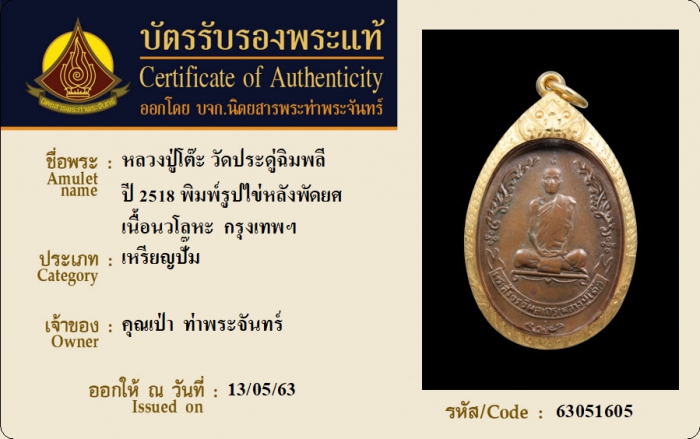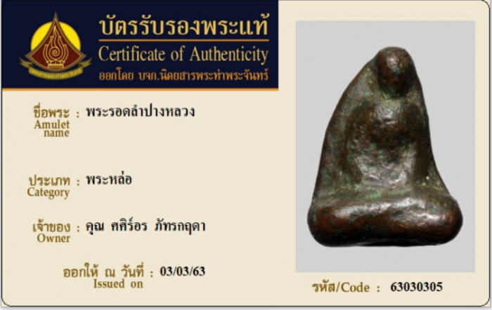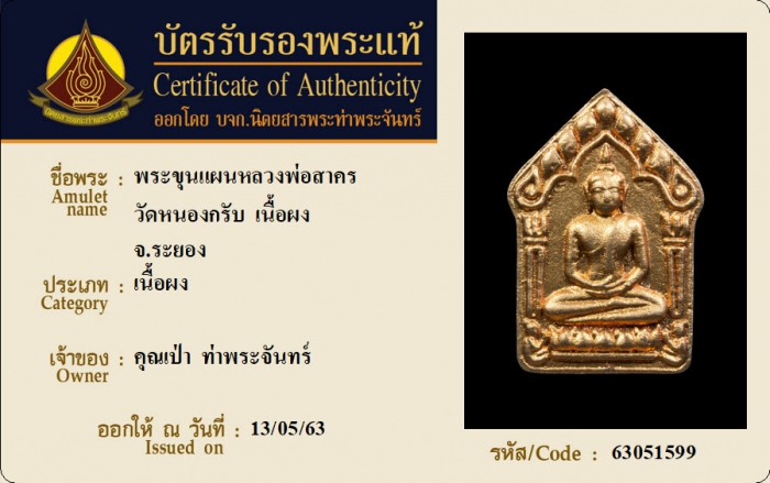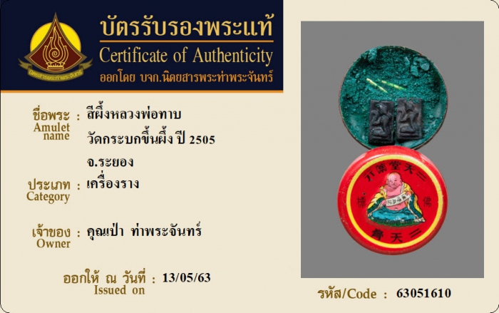 ค้นหาใบการันตีพระแท้