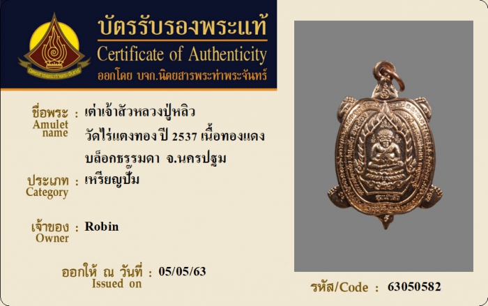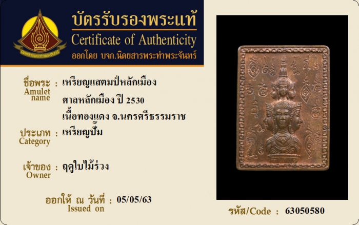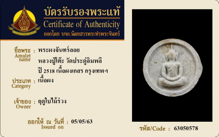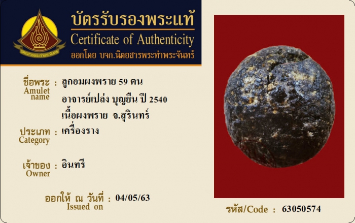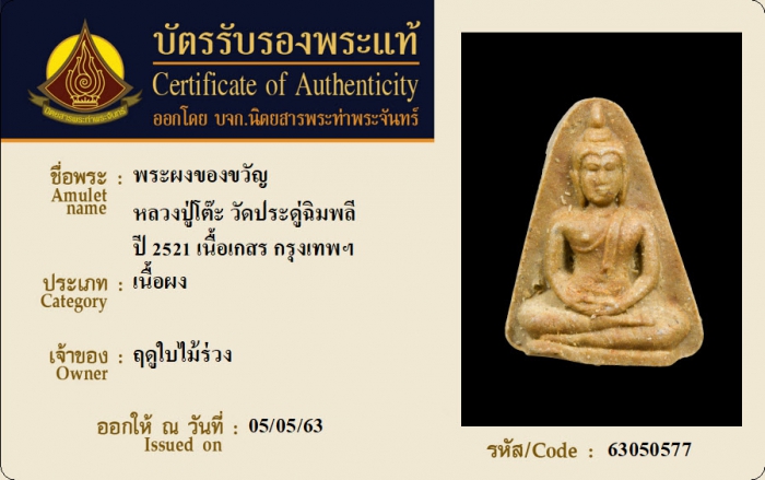 ค้นหาใบการันตีพระแท้