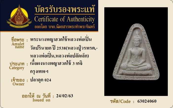 ค้นหาใบการันตีพระแท้