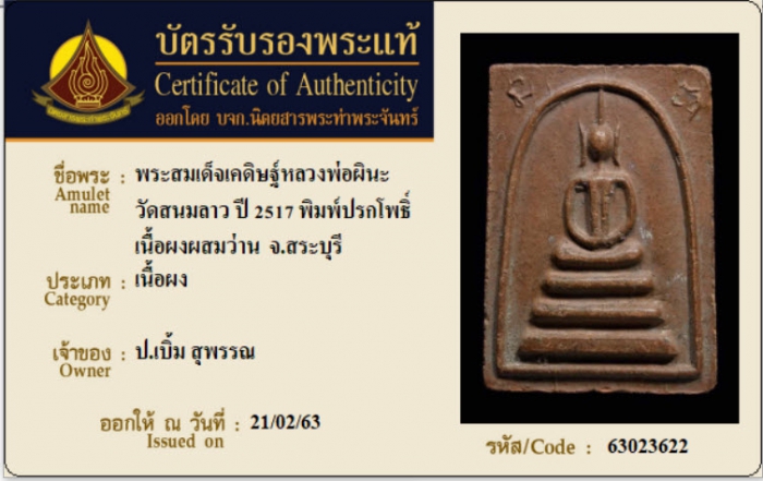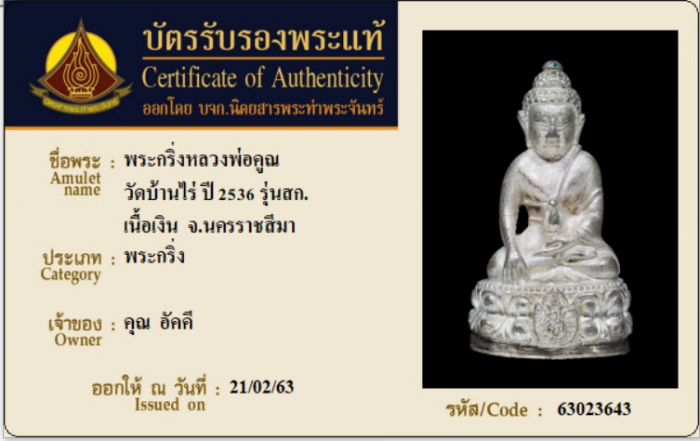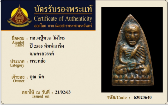 ค้นหาใบการันตีพระแท้