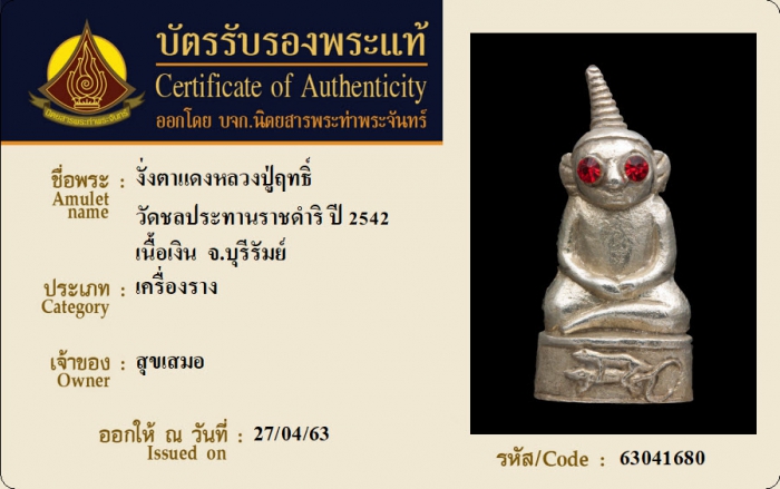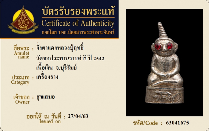 ค้นหาใบการันตีพระแท้