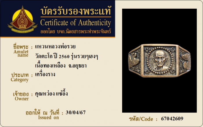 ค้นหาใบการันตีพระแท้