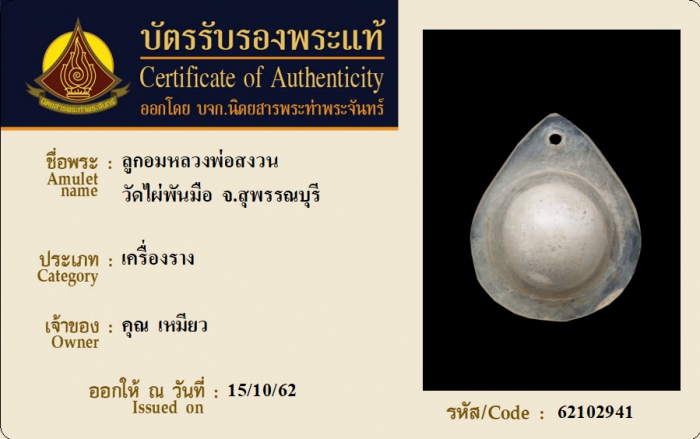 ค้นหาใบการันตีพระแท้