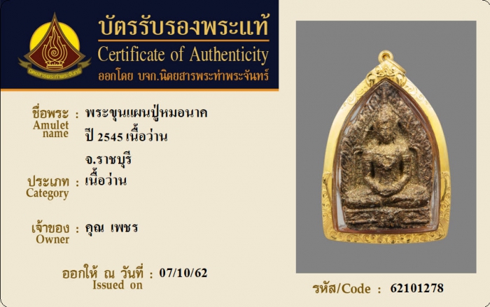 ค้นหาใบการันตีพระแท้