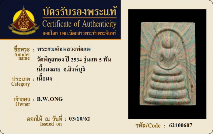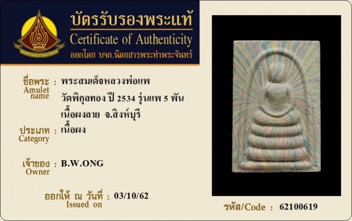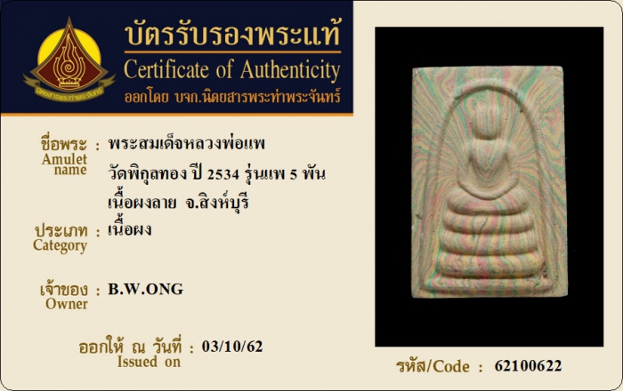 ค้นหาใบการันตีพระแท้