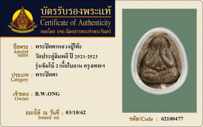 ค้นหาใบการันตีพระแท้