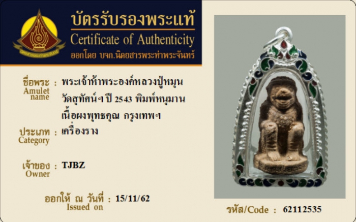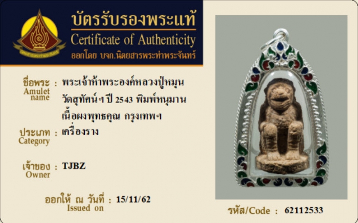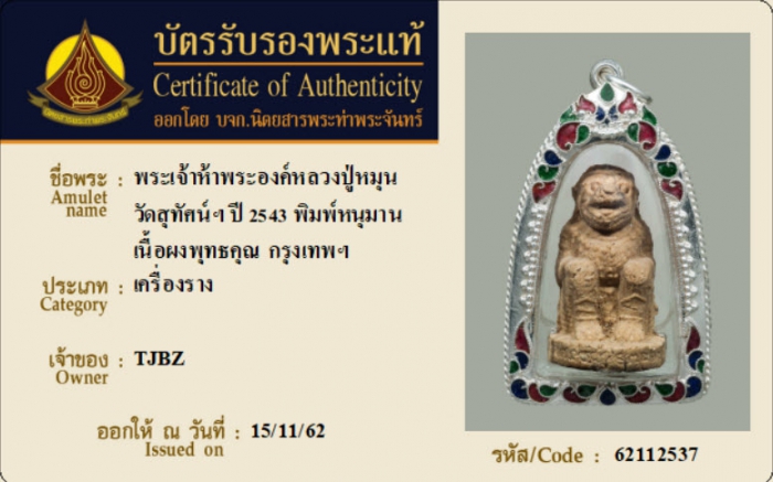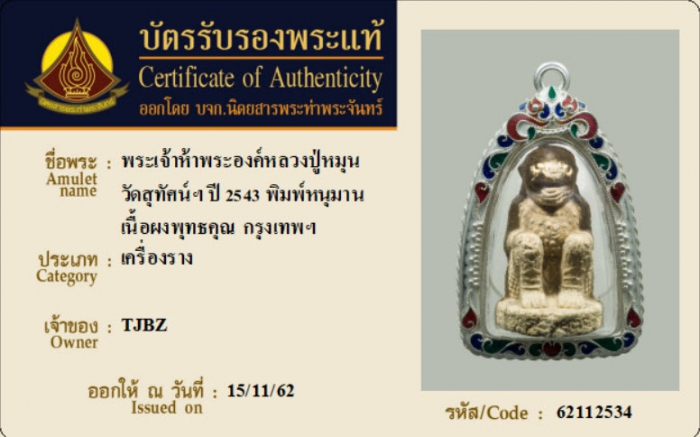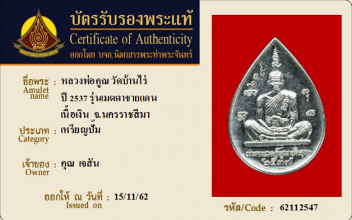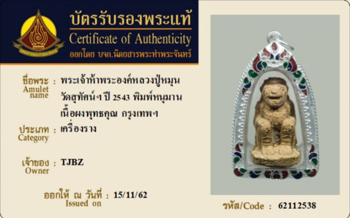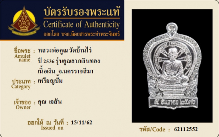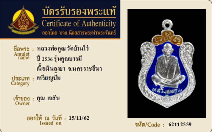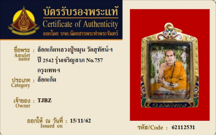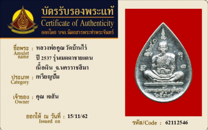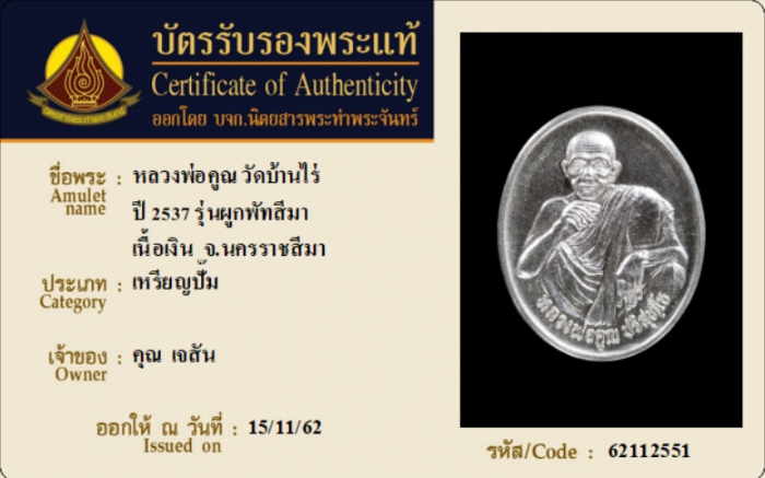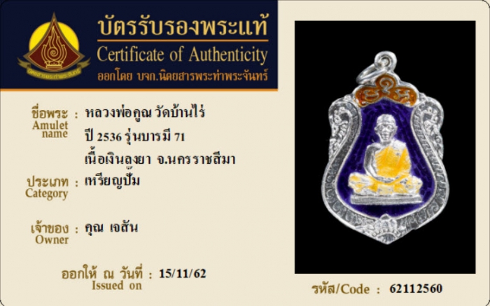 ค้นหาใบการันตีพระแท้