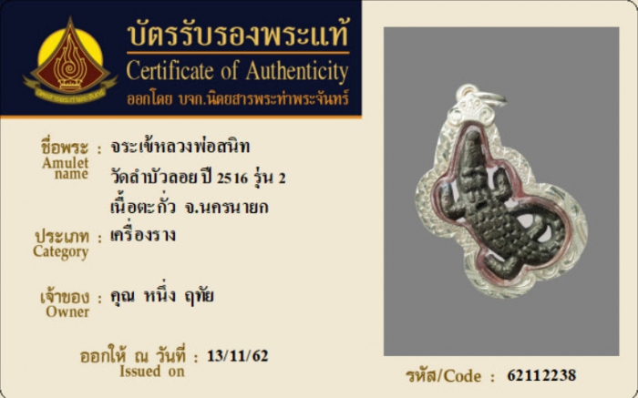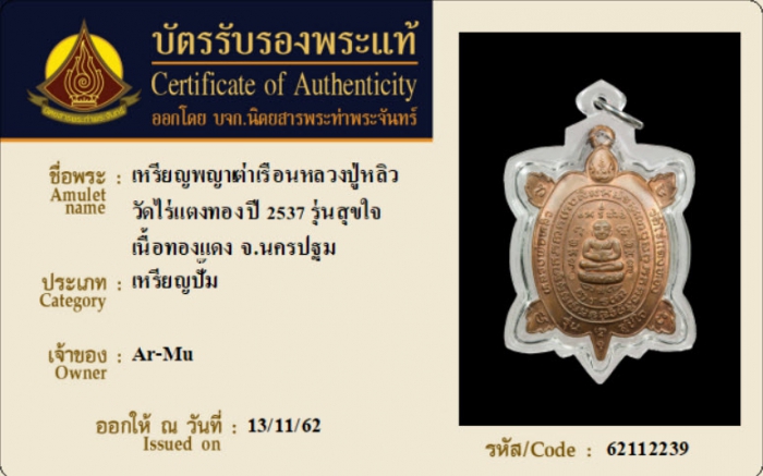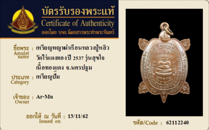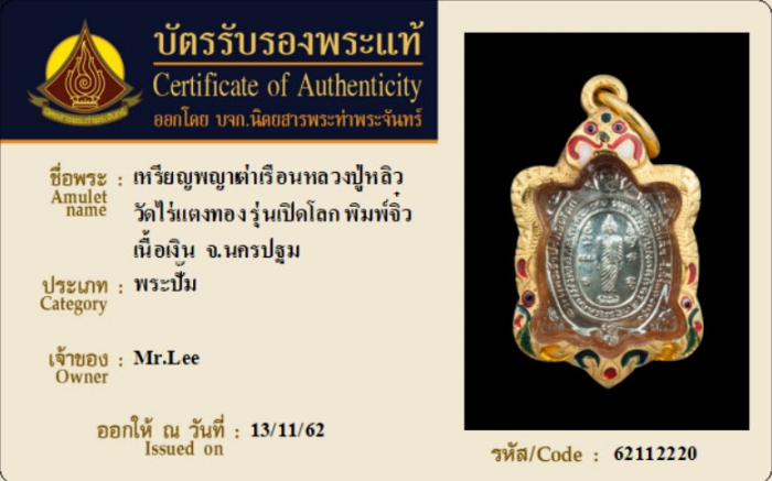 ค้นหาใบการันตีพระแท้