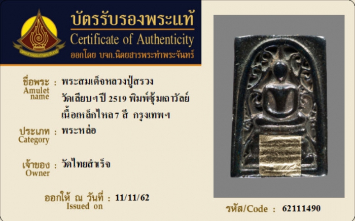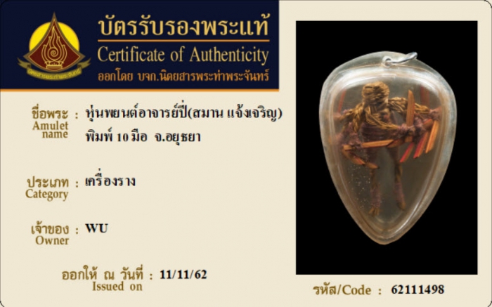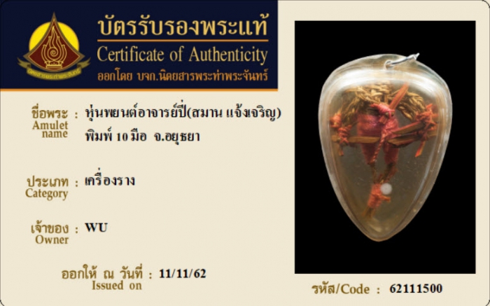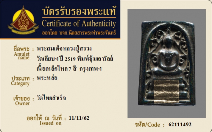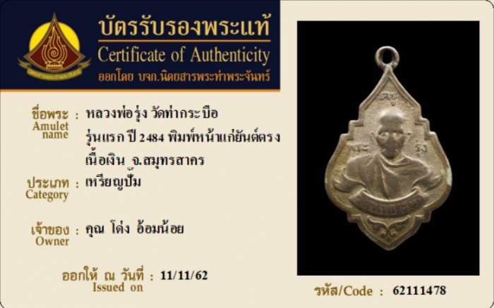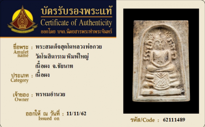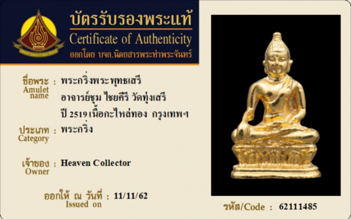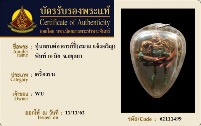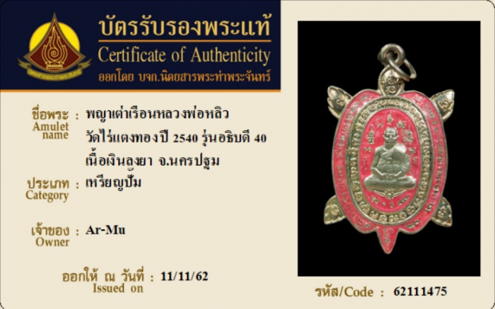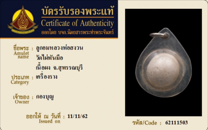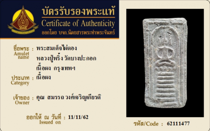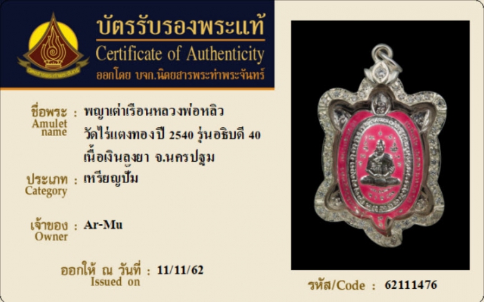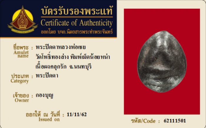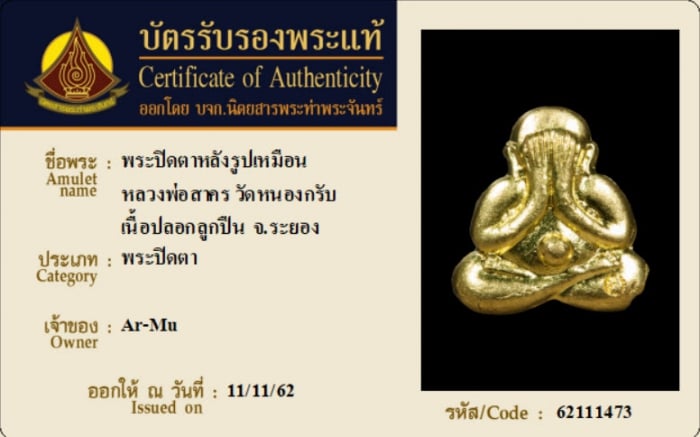 ค้นหาใบการันตีพระแท้