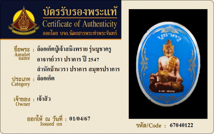 ค้นหาใบการันตีพระแท้