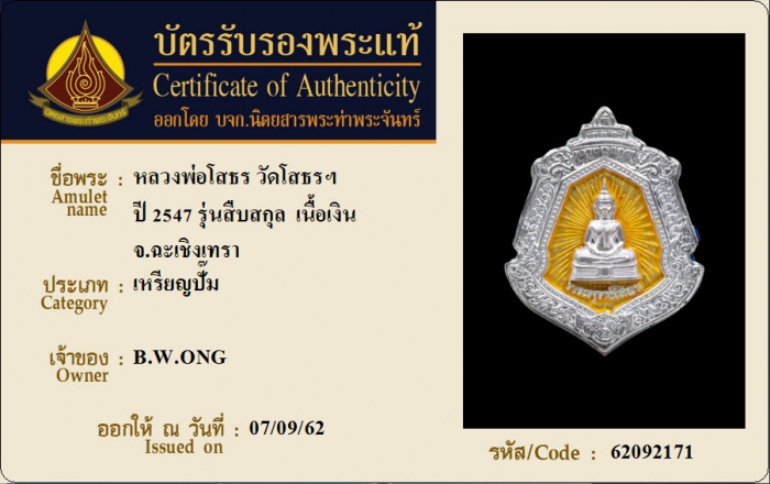 ค้นหาใบการันตีพระแท้