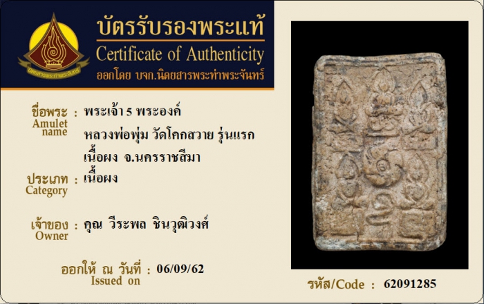 ค้นหาใบการันตีพระแท้