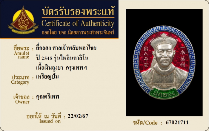 ค้นหาใบการันตีพระแท้