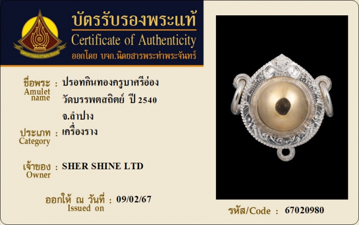 ค้นหาใบการันตีพระแท้