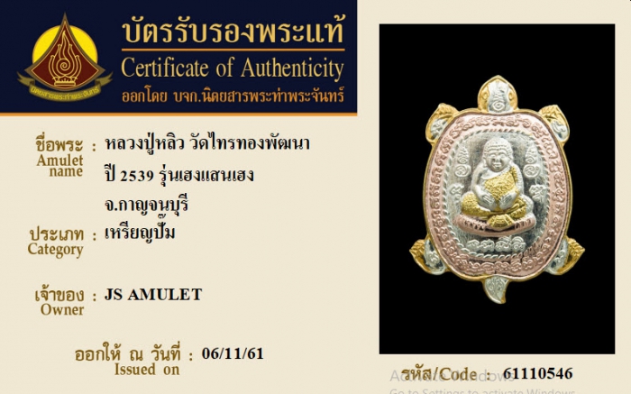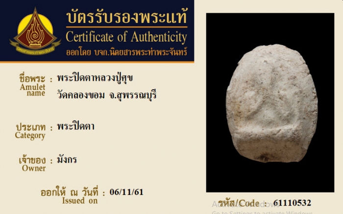 ค้นหาใบการันตีพระแท้
